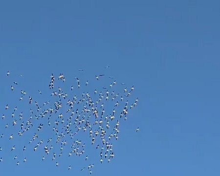 إيذانًا ببدء فصل الخريف وهجرة الطيور انطلقت مئات طيور البجع هذا الصباح من محمية ديفلا الطبيعية على ساحل الكرمل في طريقها جنوبًا إلى أفريقيا.تصوير- جاي...