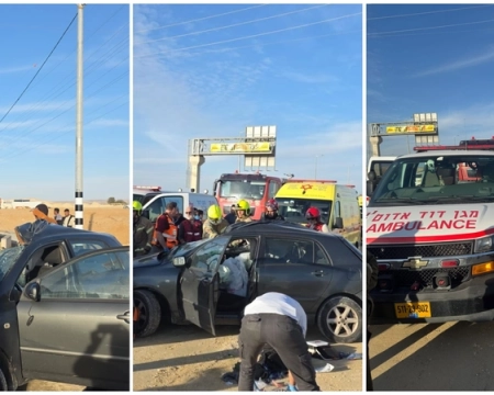 قالت الناطق بلسان نجمة داود الحمراء: عند الساعة 3:30 بعد الظهر، ورد بلاغ على الخط الساخن 101 لنجمة داود الحمراء في منطقة النقب حول وقوع حادث سير بين شاحنة ومركبة...