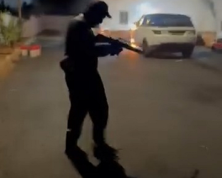 توثيق مرعب من سخنين - ملثمون وسلاح وحرق سيارة واطلاق وابل رصاص على بيوت