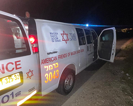 قال المتحدث باسم نجمة داوود الحمراء: في تمام الساعة 5:57 صباحًا، ورد بلاغ إلى مركز خدمة نجمة داوود الحمراء 101 في منطقة الكرمل، يفيد بسقوط مركبة على سقالة على الطريق...